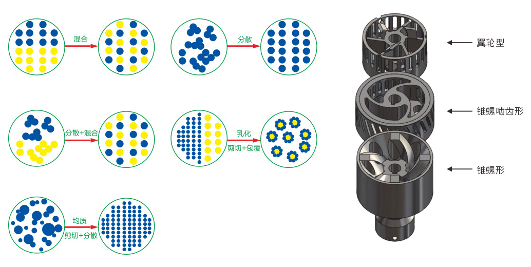 微观上对物料进⾏⾼速剪切以达到分散、乳化、均质的作⽤。